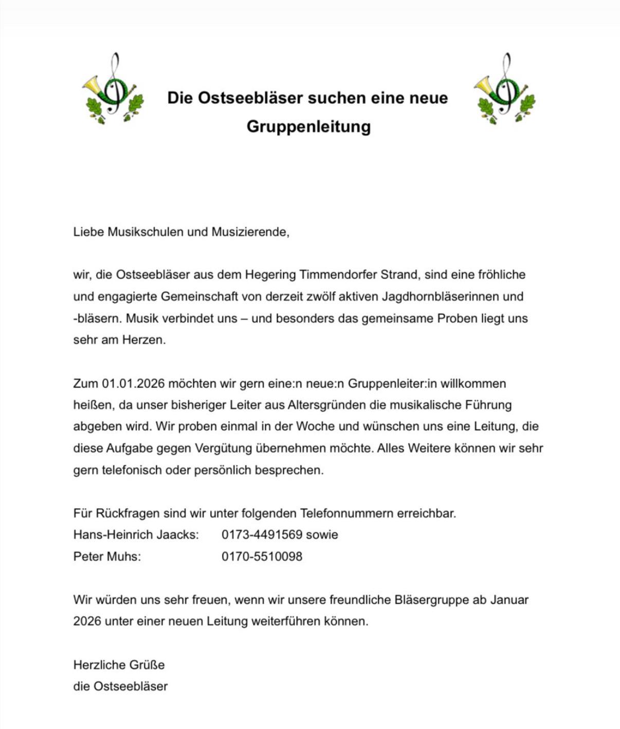 - Die Ostseebläser suchen eine neue Gruppenleitung
