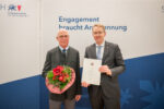 Am 02. Dezember 2025 wurde Gerhard Büge mit der Ehrennadel des Landes S.-H. für ehrenamtliche Verdienste um das Gemeinwohl aus den Händen von Ministerpräsident Daniel Günther geehrt. Büge engagiert sich seit 30 Jahren ehrenamtlich für den Wild- und Tierschutz. In dieser Zeit hat er mit seinen professionell ausgebildeten Vorsteh- und Schweißhunden bereits tausende Nachsuchen auf verletztes Wild durchgeführt. Pro Jahr wird er rund 250-mal gerufen, um verletzte Tiere, bspw. nach einem Wildunfall, aufzufinden und die Jagd weid- und tierschutzgerecht auszuüben. Seit 1998 engagiert er sich als Ausbilder für Jagdhunde und prüft in seiner Funktion als Verbandsrichter junge Hunde für den Jagdgebrauch. Als Obmann für Naturschutz und Begrünung der Kreisjägerschaft Segeberg hat er mit seinem Fachwissen als Gartenbauingenieur mit dem Begrünungsausschuss viele Naturschutzprojekte betreut. Darüber hinaus engagiert er sich seit vielen Jahren im Naturschutzbeirat des Kreises Segeberg und als Ortsnaturschutzbeauftragter in seiner Heimatgemeinde. In der Zusammenarbeit mit der Jägerschaft, den Landesforsten und den Behörden genießt Gerhard Büge durch seinen Einsatz hohes Vertrauen. Wir gratulieren herzlich zu dieser Ehrung!